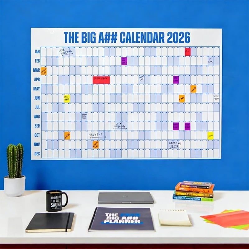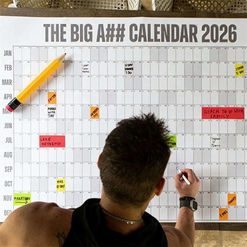 This oversized calendar isn't just a planner—it’s your daily dose of clarity and control. Keep it close for bold visibility, seamless planning, and a little extra peace of mind in every busy week.